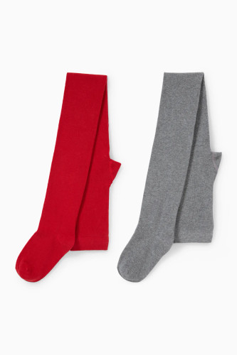 جوراب شلواری بچگانه پک دوعددی رنگ قرمز و طوسی برند c&a