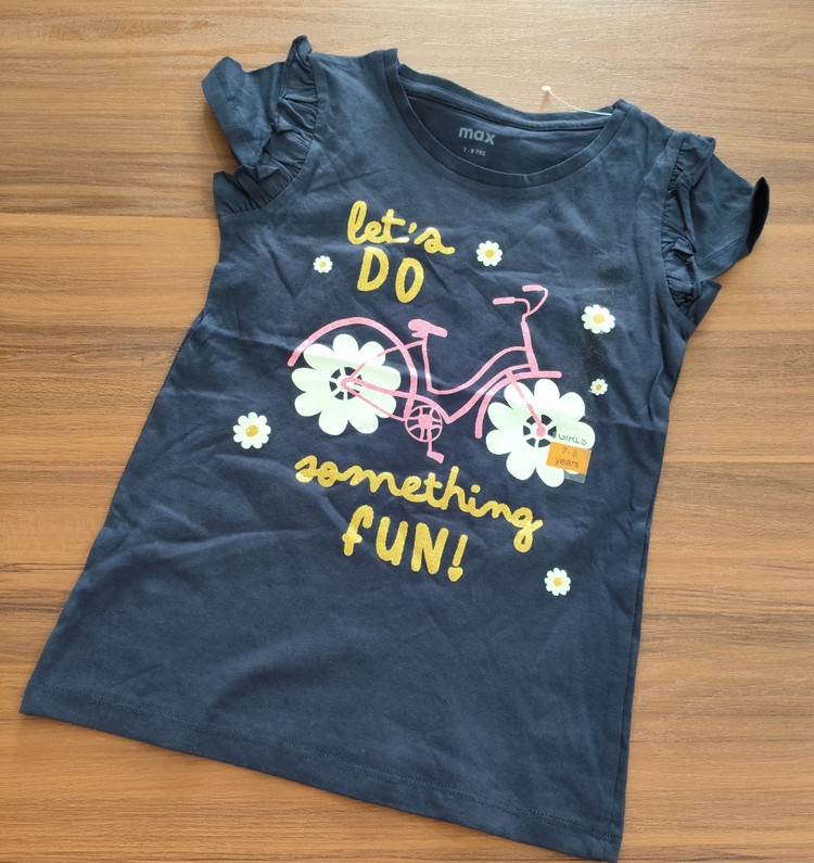 تیشرت دخترانه پنج تا شش سال برند مکس طرح دوچرخه