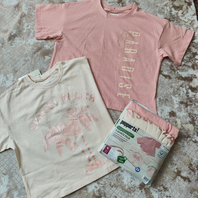 تیشرت کراپ دخترانه پک دوعددی برند pepperts آلمان