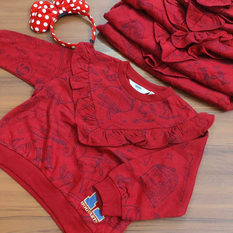 بلوز توکرکی دخترانه برندh&m طرح یقه چیندار قرمز