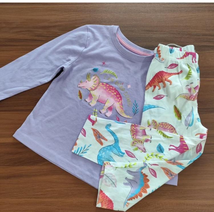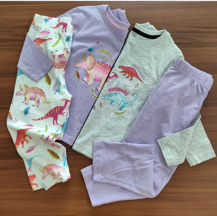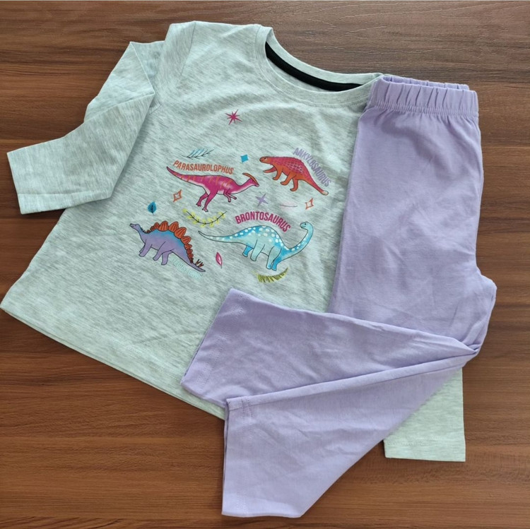 ست نخی راحتی دخترانه و پسرانه طرح دایناسور سایز 2 تا 4 سال