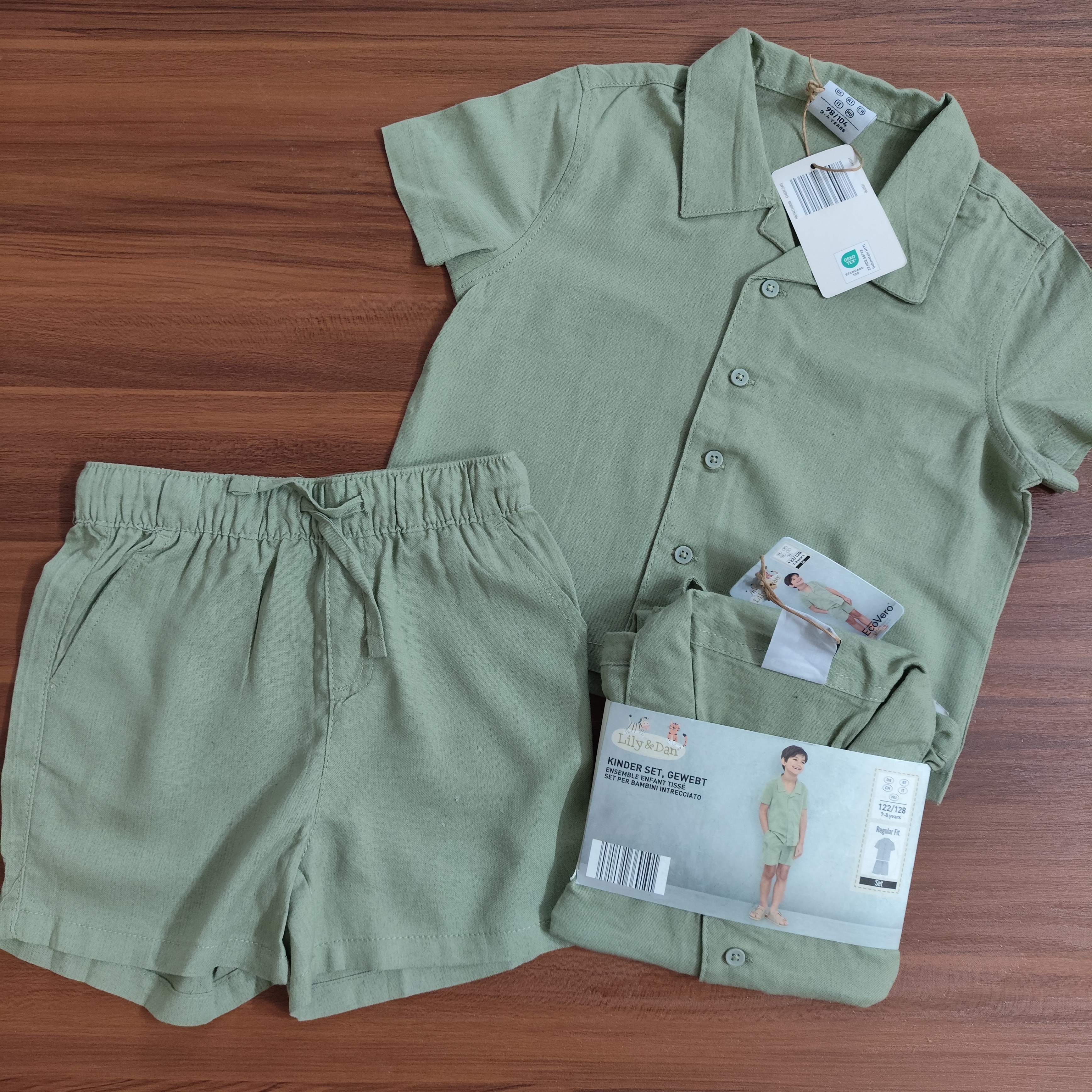 کمر با بند جمع میشه 3 تا 4 سال...قد 37 پهنا 34 و قد شلوارک 28 7 تا 8 سال... قد تیشرت 47 پهنا 39 و قدشلوارک 33